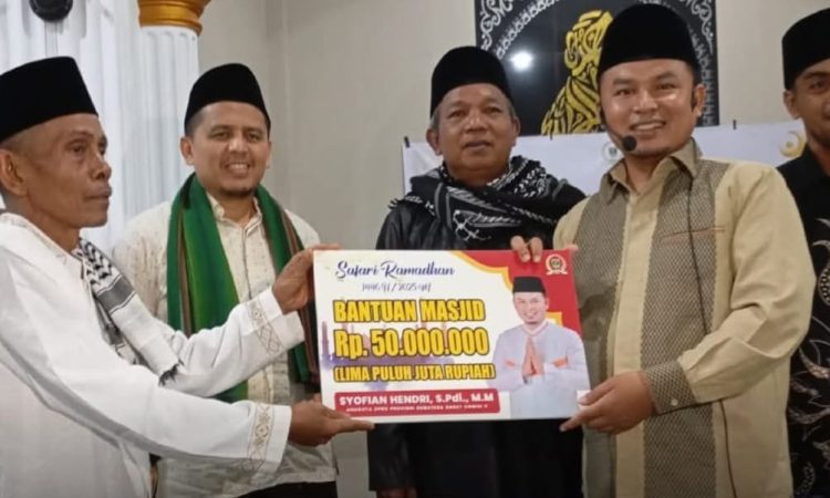 Sijunjung, SIARAN BERSINAR – Anggota Komisi V DPRD Sumatera Barat, Syofyan Hendri, melaksanakan kegiatan Safari Ramadhan di Masjid Al-Ikhsan, Kunpar, Kecamatan Kamang Baru, Kabupaten Sijunjung, pada Jumat (21/3/2025).