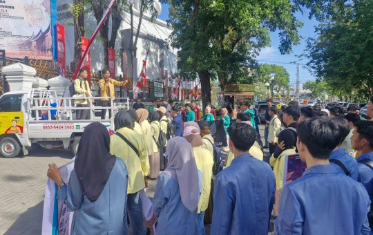Aliansi Badan Eksekutif Mahasiswa (BEM) se-Sumatera Barat dalam aksi menyampaikan 12 tuntutan melalui DPRD Provinsi Sumatera Barat di Gedung DPRD...
