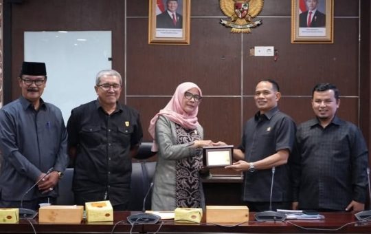 Ketua Badan Pembentukan Peraturan Daerah (Bapemperda) DPRD Provinsi Sumatera Barat, M Yasin didampingi wakilnya Zulkenedi Said, menerima kunjungan Pimpinan dan...