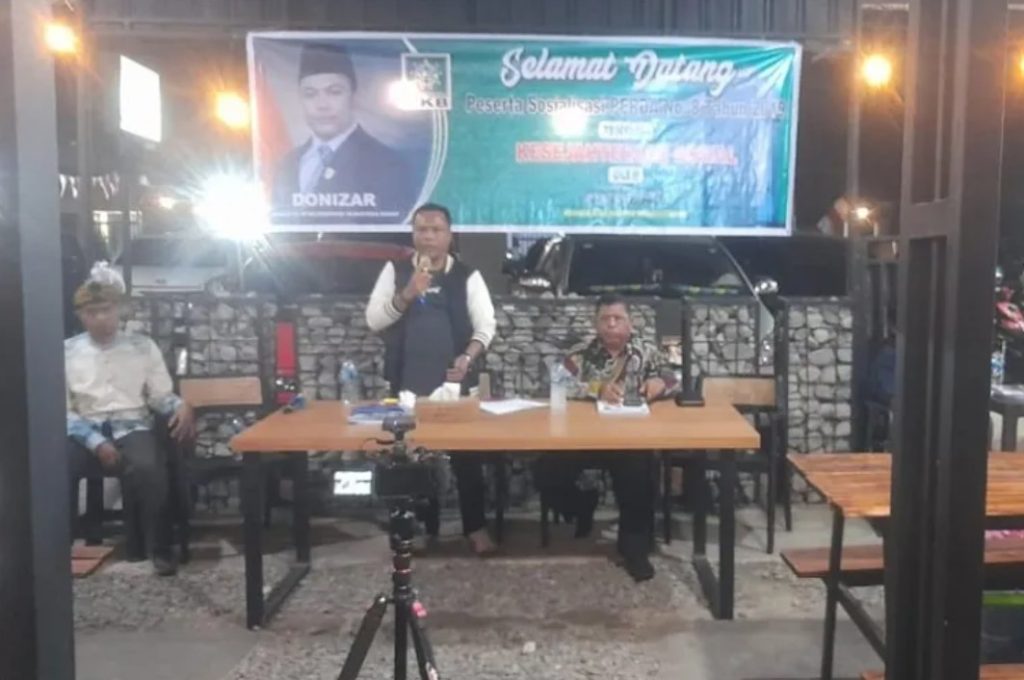 Anggota DPRD Sumbar, Donizar menggelar sosialisasi Perda Nomor 8 Tahun 2019 tentang Penyelenggaraan Kesejahteraan Sosial, Sabtu (23/8) di salah satu kafe di kawasan Simpang Empat, Pasaman Barat.