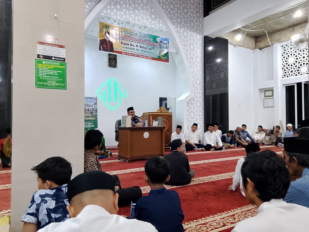 Ketua DPRD Sumbar, Muhidi memaparkan 3 keutamaan Al Quran saat Safari Ramadan di Masjid As-Sakinah, Komplek Villa Anggrek I, Kelurahan Balai Gadang, Kecamatan Koto Tangah, Rabu (19/3).