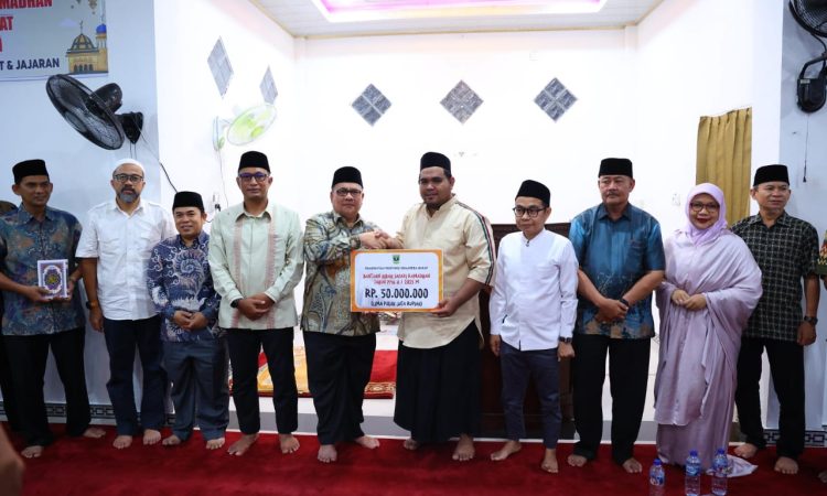 Sebagai Ketua Tim Safari Ramadan Pemerintah Provinsi Sumatera Barat (TSR Pemprov Sumbar), Muhidi menyerahkan bantuan sebesar Rp 50 juta dan 10 Al-Qur’an kepada Masjid Al-Ikhlas.