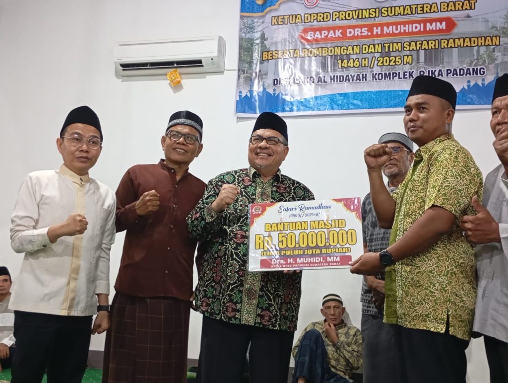 Ajakan Ketua DPRD Provinsi Sumatera Barat Muhidi tersebut disampaikan saat melaksanakan Safari Ramadhan di Mesjid Al Hidayah, Kompleks PJKA, Kelurahan Sawahan, Kecamatan Padang Timur, Kota Padang, Selasa 18 Maret 2025.