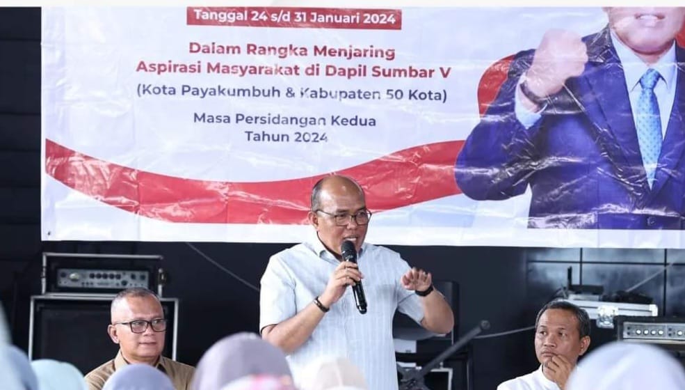 Payakumbuh – Ketua Dewan Perwakilan Rakyat Daerah (DPRD) Provinsi Sumatra Barat (Sumbar), Supardi, melakukan kegiatan reses di Kota Payakumbuh tepatnya di Agam Jua Art & Culture Cafe, Jum’at (26/1/2024).