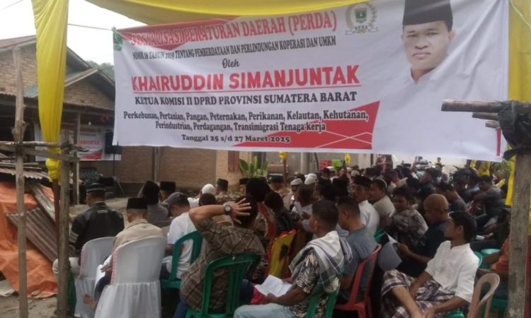Kabupaten Pasaman, SIARAN BERSINAR – Ketua Komisi ll DPRD Provinsi Sumbar, Khoruddin Simanjuttak dari fraksi Partai Gerindra Sosialisasi Peraturan Daerah (Sosper) No. 16 Tahun 2019 tentang Pemberdayaan pengembangan dan Perlindungan Ekonomi Kreatif, Koperasi dan Usaha UMKM.