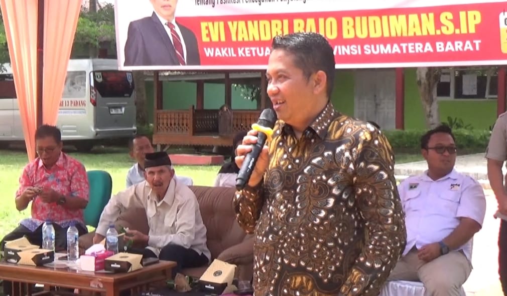 Evi Yandri Rajo Budiman selaku Wakil Ketua DPRD Sumbar menggelar Sosialisasi Peraturan Daerah (Sosper) di halaman SMA Negeri 13 Padang di Kawasan Balai Gadang Kecamatan Koto Tangah Kota Padang, Sabtu (25/10/2025).